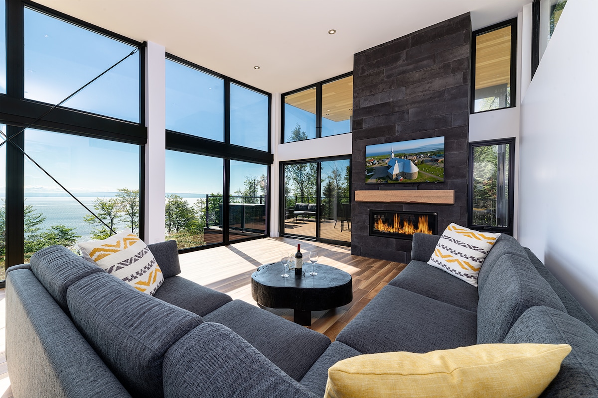 Skriveno u prelepom Šarlevoj, smeštenom u planinama Lorentijana i sa pogledom na reku Sent Lorens je planinska kuća Le128. Svetla, prostrana i udobna sa jedinstvenom slikom sa savršenim pogledom sa svakog prozora. Uživajte u neverovatnom skijanju u obližnjem masivu Le Massif, istražite planinarske staze uz reku i planine, probajte lokalne delikatese i pregledajte galerije obližnjih Baie Saint Paul. Opustite se u hidromasažnoj kadi, roštilju na privatnoj terasi i odmorite se u 2 velikodušne spavaće sobe. Plafoni sa svodom!