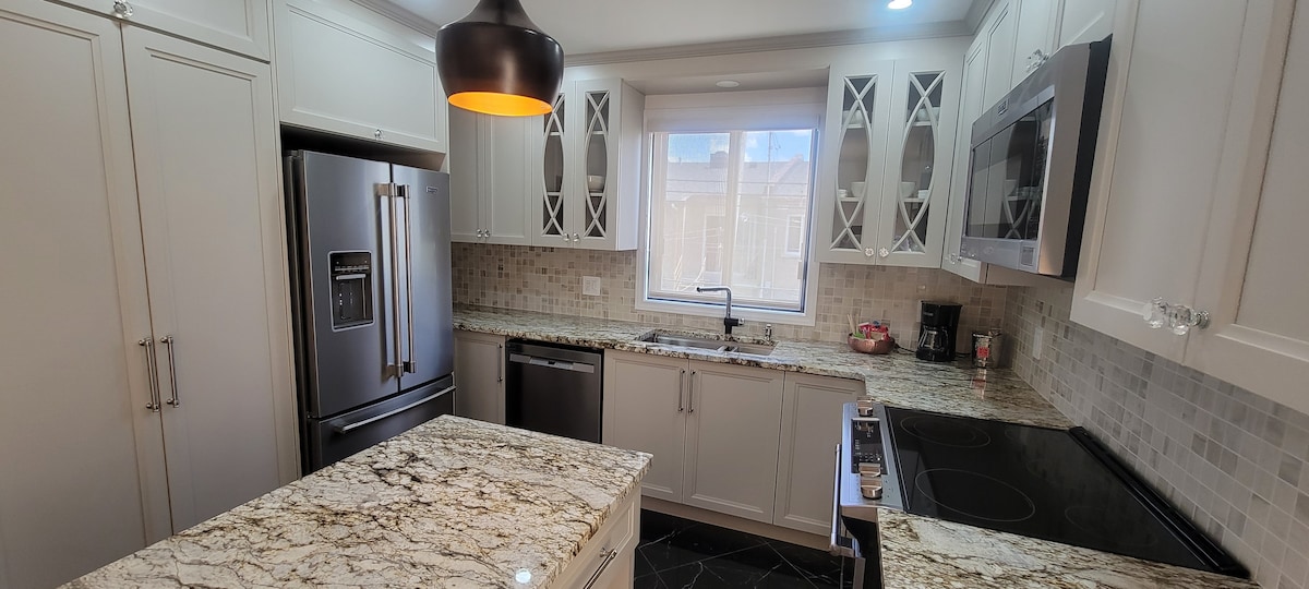 🛏️ Spavajte kao san – plišani bračni krevet s hotelskom posteljinom. Opustite se nakon što istražite Montreal. 📺 Netflix & Chill Ready – Smart TV sa aplikacijama za striming. 🚿 Moderno i besprekorno kupatilo – 🍳 Potpuno opremljena kuhinja – uštedite $$ na večeri! Kuvajte kao profesionalac sa svom osnovnom opremom. 🚗 RIJETKA PRILIKA: BESPLATAN parking! - Parkirajte BESPLATNO. 🚀 Work & Play – brzi Wi-Fi + namjenski radni prostor za digitalne nomade. ✅ 14 minuta do centra Montreala – savršeno za koncerte, festivale, noćni život!
