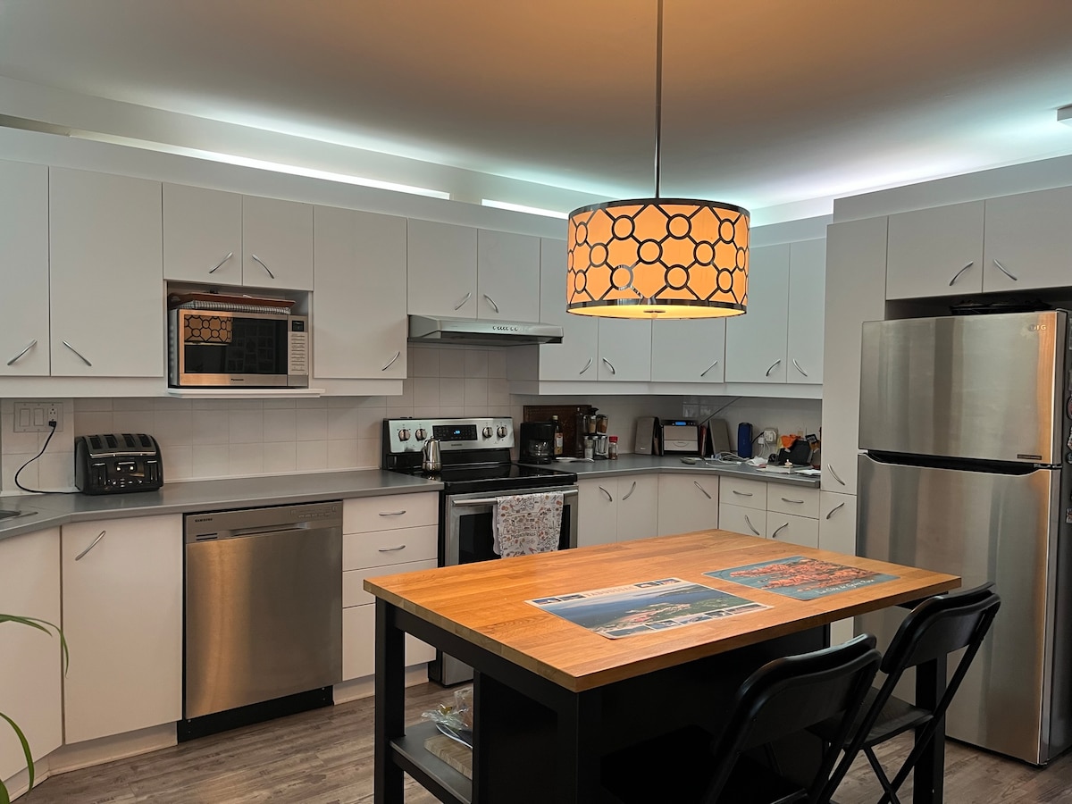 Vrhunski novi stan sa 2 spavaće sobe 1200 kom (111 mc) koji se nalazi na obalama reke Sent Lorens u Montrealu. Klima-uređaj Wi-Fi, Netflix, mašina za pranje i sušenje veša, mašina za sudove, osnovni sadržaji, sapun za pranje veša, potpuno opremljen, parking. Nalazi se na manje od 30 minuta od centra grada i glavnih atrakcija grada Montreala. Pješice od prirodnog parka Pointe-Aux-Prairies, sa istočne plaže, okrenute prema biciklističkoj stazi koja vodi svuda u Montrealu. 5 minuta od objekata i autoputeva. CITQ 307518