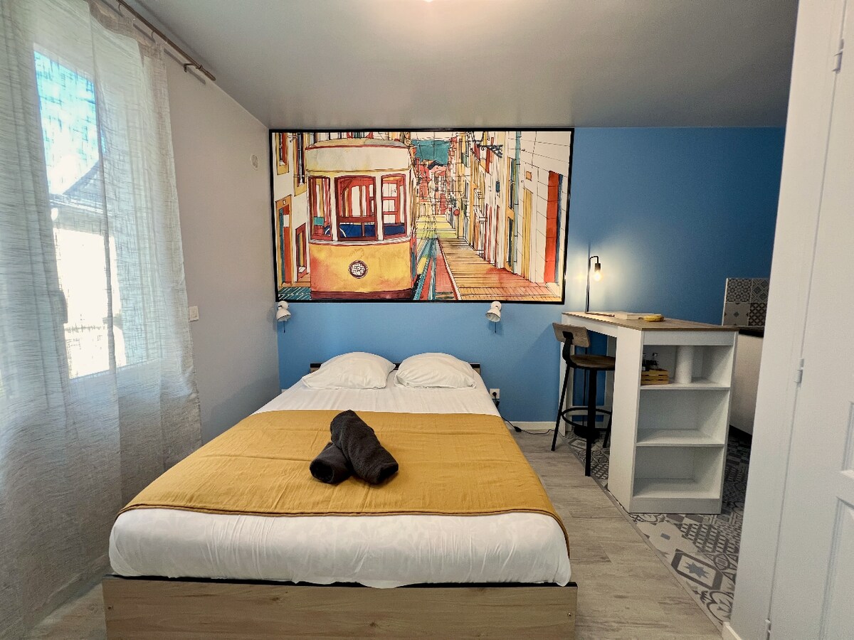 Garantovano omiljeno! Udoban T1 bis na 1. spratu zaštićene zgrade bez lifta, 5 minuta hoda od centra grada, voza i prodavnica. Topao dnevni boravak, opremljena kuhinja, posteljina i peškiri uključeni, besplatna kafa i čaj. Savršeno za poslovna putovanja ili opuštajuće boravke, samostalno ili kao par.
