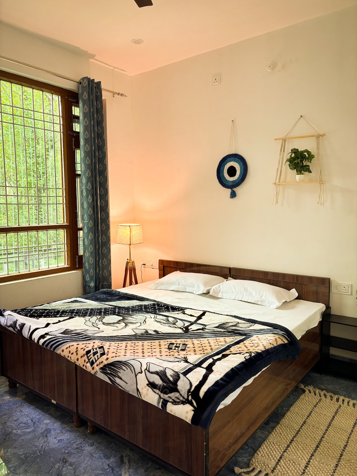 Moderna dvospratna vila smještena u prirodi, sa 360 pogleda na planine Dauladhar. Prozori i balkoni pružaju pogled na zalazak i izlazak sunca koji oduzima dah sa paraglajderima na nebu. Potpuno funkcionalna otvorena kuhinja. Dnevni boravak je prostran sa bujnom zelenom privatnom baštom. Ima 3 velike spavaće sobe i prostor za druženje. Dnevni boravak i salon su osmišljeni za razgovore i zajednicu. Vila prima kućne ljubimce. 12 minuta hoda do mjesta slijetanja 5-10 minuta hoda do kafića 10 minuta hoda do glavne pijace