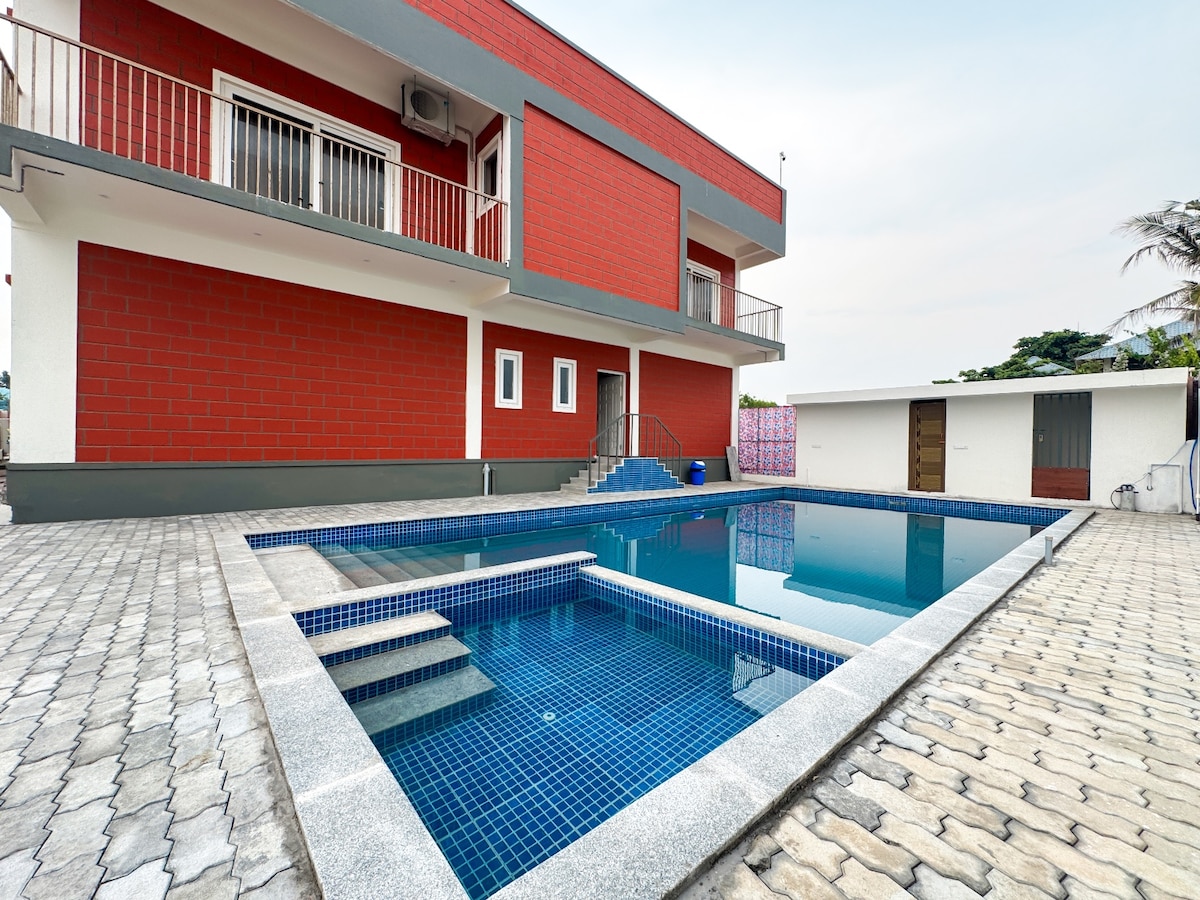 Dobro došli u naše prostrano 4BHK utočište! Uživajte u udobnom boravku sa 1 sobom sa klima-uređajem u prizemlju i 3 sobe sa klima-uređajem na prvom spratu, koje mogu da prime do 30 gostiju. Sa 6 kupatila sa grijalicama, velikom dvoranom za događaje i potpuno opremljenom kuhinjom. Uronite u naš bazen za odrasle (3-5 do 5,5 stopa) i bazen za djecu (2 stope) i iskoristite naš veliki travnjak sa sjedećom garniturom. Uživajte u igrama u zatvorenom i na otvorenom, roštilju i opciji za kućnog kuvara. Uz rezervno napajanje non-stop,Wi-Fi i dovoljno parkinga,