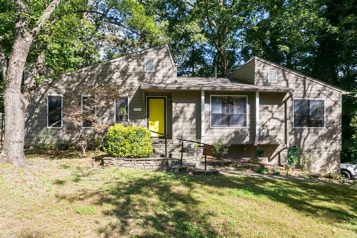SADA NUDI BORAVKE od 1 NOĆENJA OD PONEDJELJKA do ČETVRTKA; niže naknade za čišćenje po boravku: 50 $ za jedno noćenje l, 65 $ za 2 ili više noćenja. Udoban smještaj od 37 kvadratnih metara u Kennesawu (Džordžija). Privatni nivo terase sa 2BR/1BA, čajnom kuhinjom, trpezarijom, dnevnim boravkom. Unutrašnje dvorište ima grijani bazen (ljeto) i hidromasažnu kadu. Okružen drvećem za osjećaj šume. Savršeno za rad na daljinu, porodične posjete, boravke na bejzbol turniru, istraživanje ATL-a itd. Prijava bez ključa, Wi-Fi, pametni televizori sa Netflix-om u sve 3 sobe (42” i više)