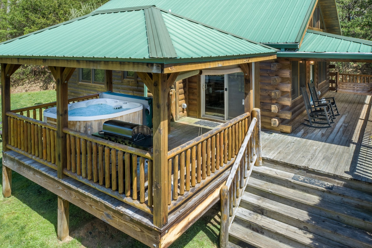 Dobro došli u slikoviti Brajson Siti! Ova potpuno nova udobna, moderna brvnara sa 2 spavaće sobe/2 kupatila je privatna i udobna, sa svime što vam je potrebno da biste ga učinili svojim domom. Ova brvnara se nalazi na pogodnoj lokaciji - manje od 1 milje do prodavnice, 2 milje do centra Brajson Sitija i železničke pruge Great Smoky Mountains i nadohvat ruke od mnoštva aktivnosti na otvorenom i vidikovaca. Uživajte u privatnom pristupu hidromasažnoj kadi, kaminu, kaminu i velikoj terasi sa predivnim pogledom na planine!