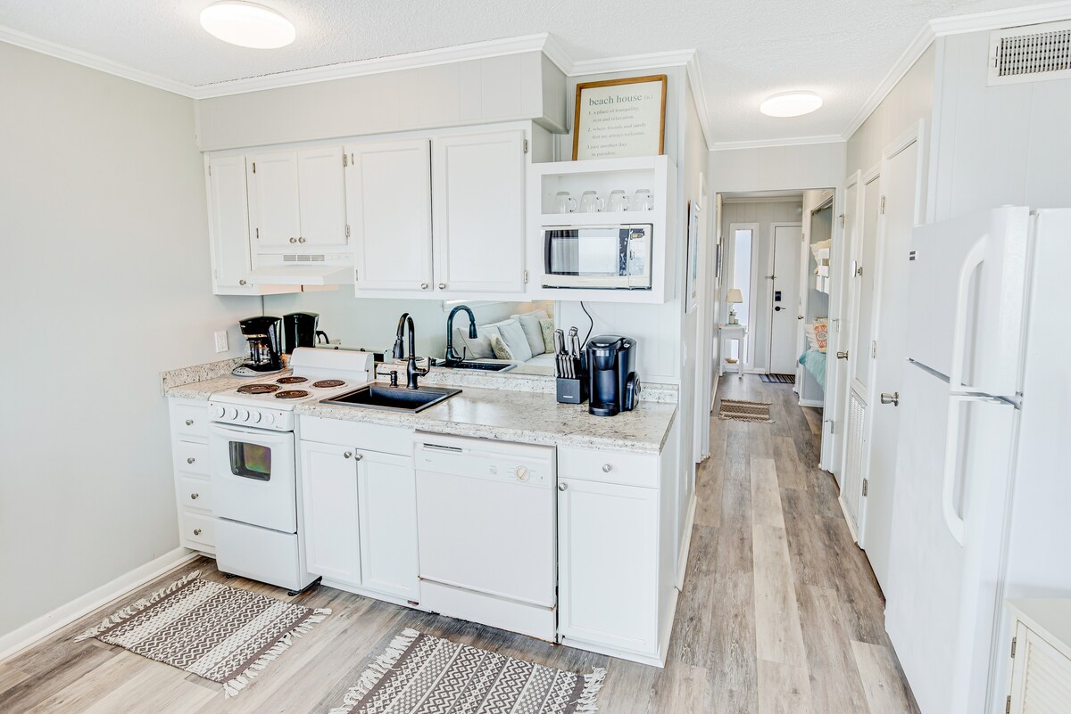 Svijetlo, moderno utočište na obali okeana gdje se sve doima jednostavnim i udobnim. Uživajte u otvorenom pogledu, čistom dizajnu i opuštenom prostoru stvorenom za opuštanje uz more. Među 5% najbolje ocenjenih u Mirtl Biču 🌴 Luksuz na obali okeana – Seawatch Resort 1003 North Tower • 🌊 Pogled na okean od poda do plafona zbog kojeg se čini da je plaža u prvom planu • 🛋 Svijetao, moderan životni prostor dizajniran da djeluje otvoreno, jednostavno i udobno • 🛏 Privatna spavaća soba sa udobnim bračnim krevetom za mirne noći • 🍳 Potpuno opremljen