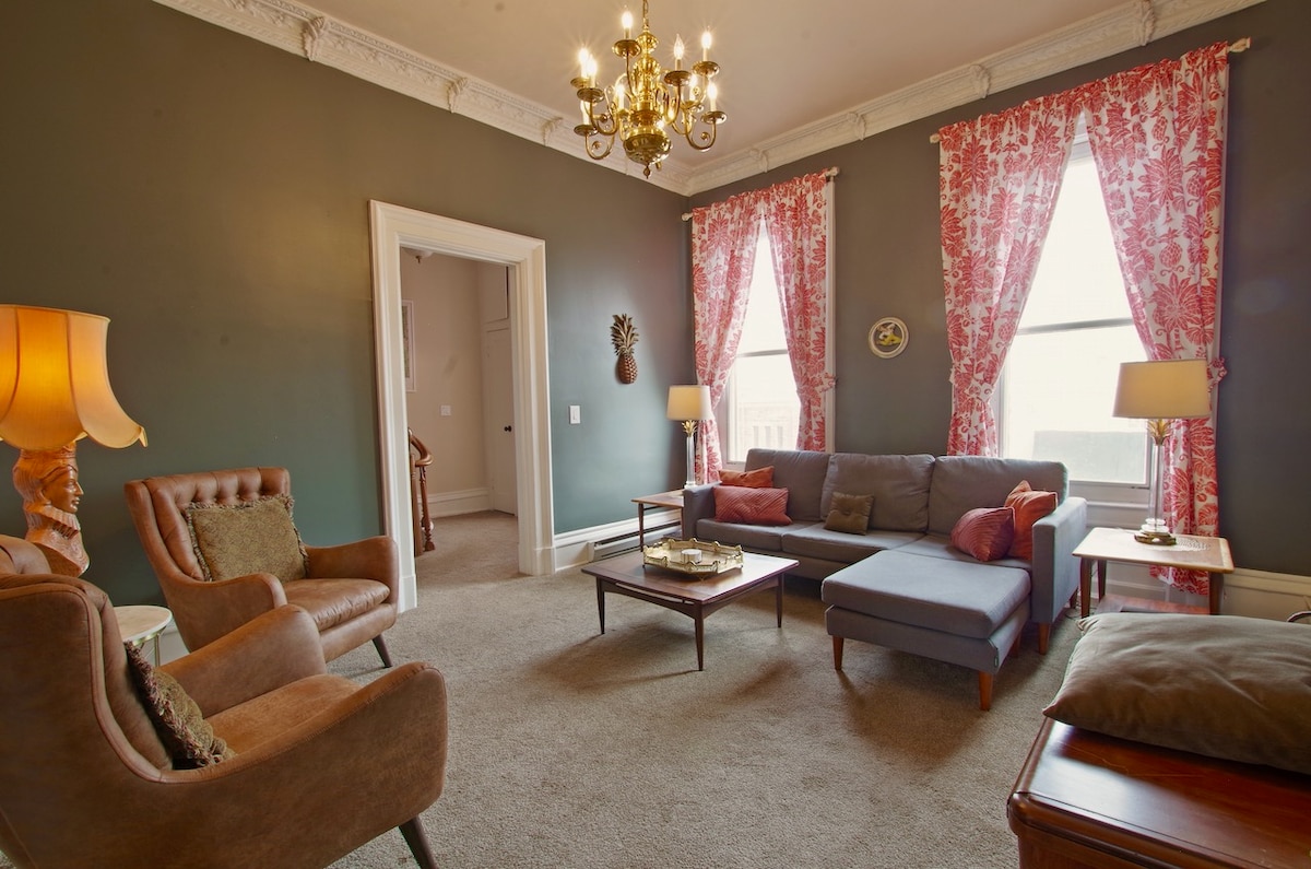 Jednosoban stan na 1. spratu sa kuhinjom i kupatilom. Bračni krevet (širine 150-179 cm) i kauč na razvlačenje za boravak do 4 osobe. Do centra Džamestauna se stiže peške peške. Dostupne kratkoročne ili snižene sedmične/mjesečne cijene. Kućni ljubimci su dobrodošli uz naknadu, pogledajte „druge napomene“. Besplatno parkiranje na ulici. Stanari žive u drugim stanovima u zgradi, prijateljski i tihi. Zgrada je stara više od 100 godina, tako da nije moderna ili fensi, samo udobna i pristupačna ako je to ono što tražite.