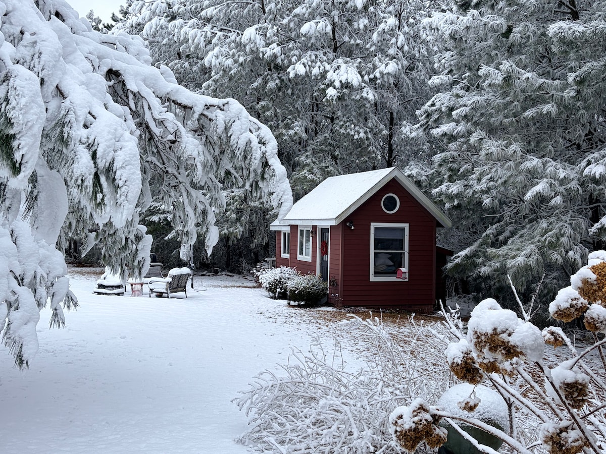 The cottage is waterfront and is a PERFECT spot for a WINTRY romantic couple's getaway! honeymoon/celebrations Designed with that in mind,a kitchen w/ espresso machine, living room with wood burning fire and a romantic luxurious suite with a king bed & cozy ambiance complete w/ water views and a stunning bathroom that features a double vanity,a large soaking tub,a tile shower with a soothing 3 function rain shower is complete with luxury linens, cozy robes & soft towels