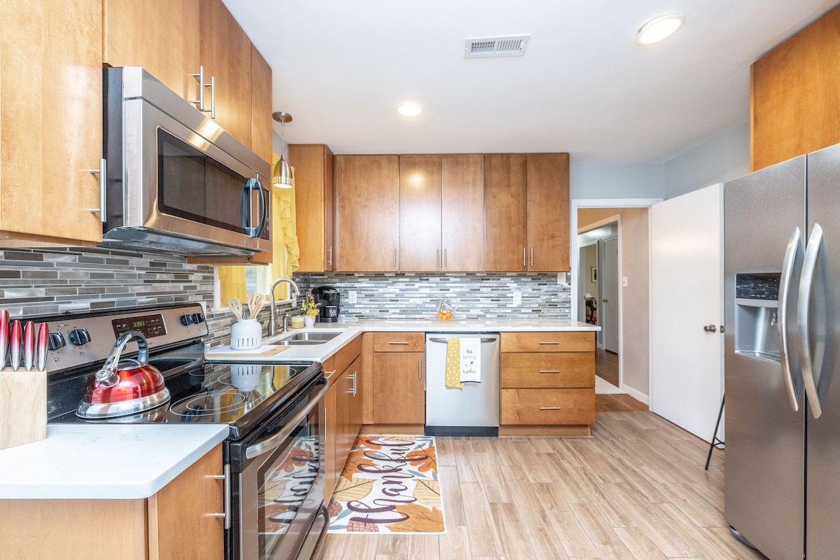 The beautiful turn of the century home overlooks the Richmond city skyline from its perch on Princess Anne Avenue. Across the street is Jefferson Park- a nice urban park with a large playground, exercise equipment, and plenty of space to walk your dog or toss a frisbee. Beautifully decorated, comfortable beds, and Chefs kitchen w/Viking gas stove! Small Gatherings allowed for addl fee.Nice porch for morning coffee and a covered porch in the back. We look forward to hosting you!