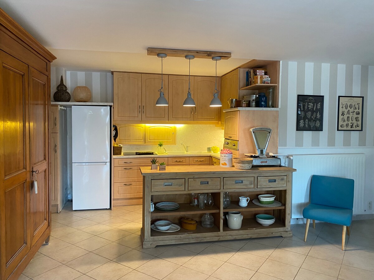 Uživajte u prijatnom mirnom boravku u novom studiju na selu, prostranom, sa nezavisnim ulazom, koji se nalazi u blizini izlaza A89 (5 min), izlaza A6 (15 min) i vozom TER (udaljenom 3 km). - Potpuno opremljena čajna kuhinja: frižider, mašina za sudove, mikrotalasna rerna, indukciona ploča za kuvanje, aparat za kafu, čajnik, posuđe - Bračni krevet i kauč - Kupatilo sa italijanskim tušem i privatnim WC-om - 2 televizora i video projektor (mnogo filmova) - Privatan baštenski nameštaj