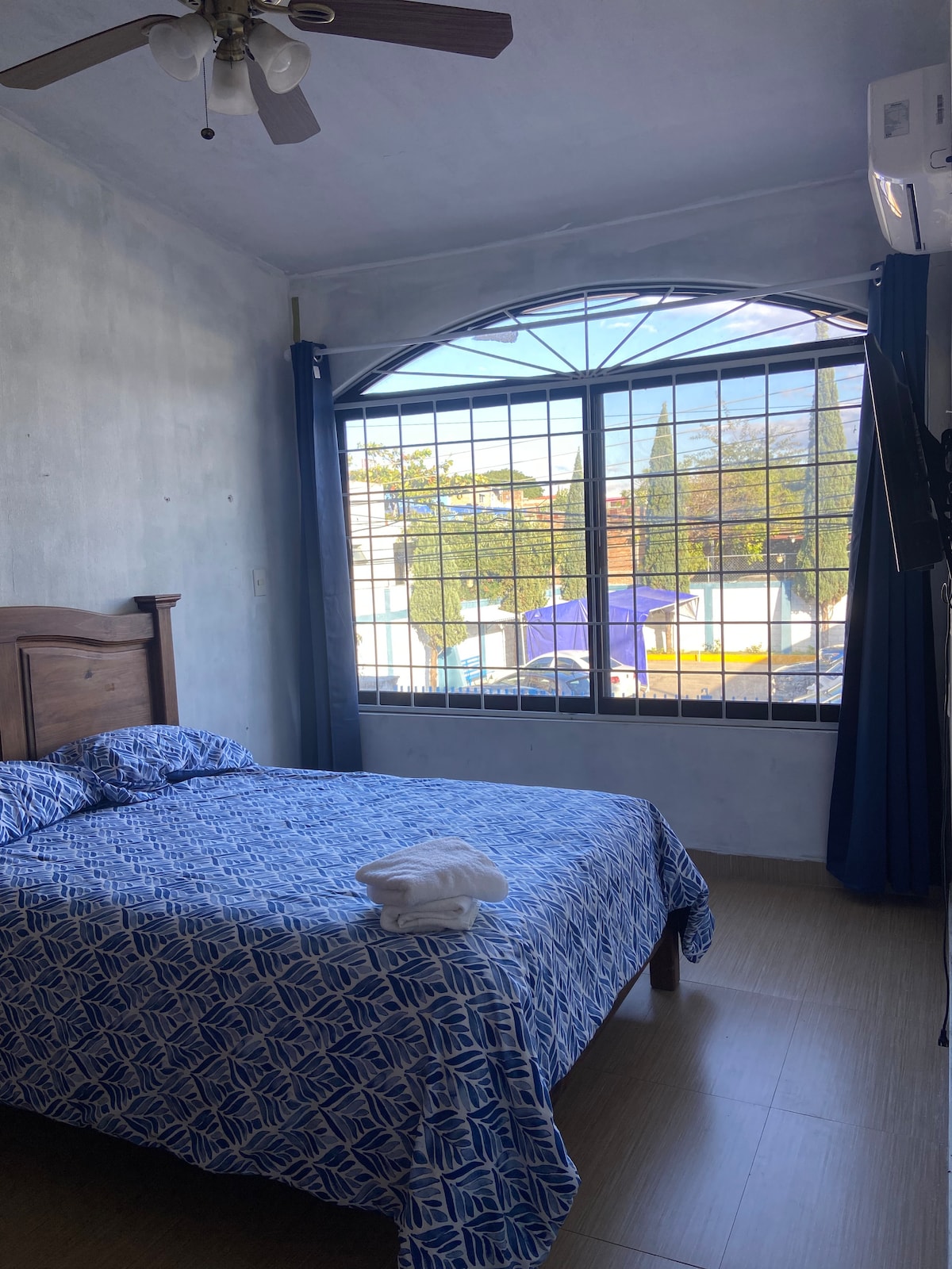 Habitación privada sencilla y funcional, con entrada independiente, cama matrimonial, baño propio, wifi y estacionamiento dentro del recinto. 🌤️ En temporada de calor, el ambiente puede ser cálido (solo ventilador de techo). Ideal para estancias cortas o de trabajo. 🏡 Reglamento: - No se permite fumar ni consumir alcohol. - Silencio después de las 11 PM. - Cuida el mobiliario y equipo. - Solo se admiten las personas registradas. ✨ Práctica y tranquila, ideal para descansar.