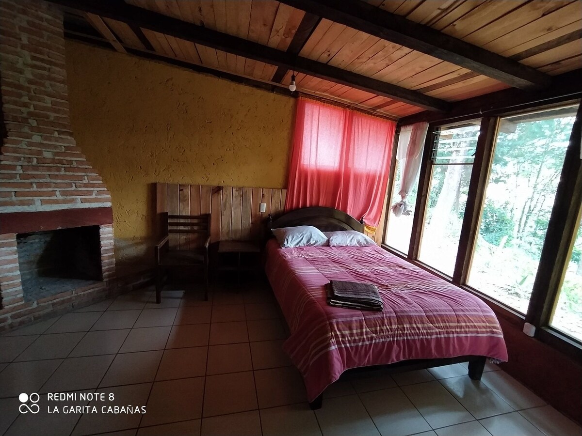 Disfruta de la amplitud y calidez de nuestra cabaña grande, diseñada para ofrecer privacidad y descanso en la montaña. Con dos habitaciones independientes y ventanales que integran el paisaje arbolado a tu estancia, es el lugar perfecto para grupos o familias que buscan una experiencia única en San Cristóbal