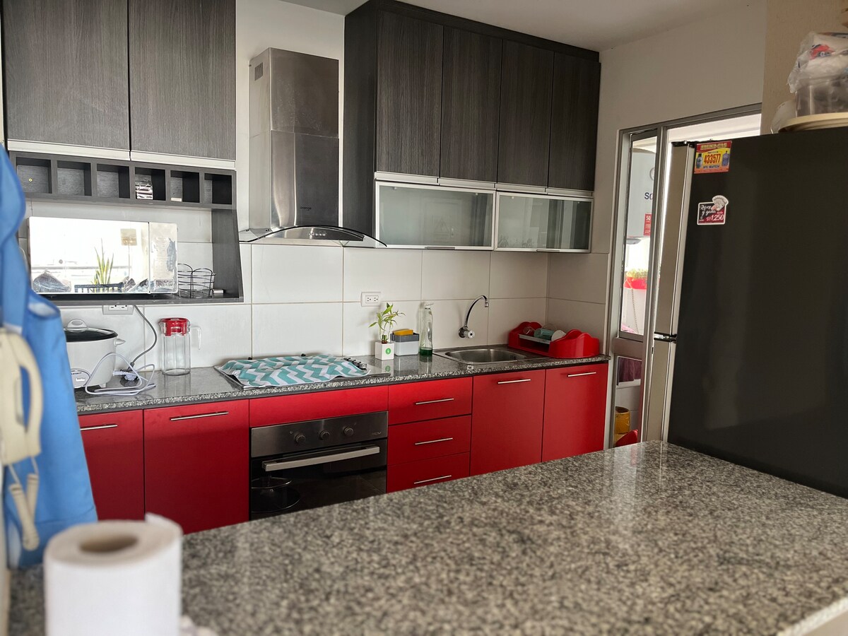 Udobna nezavisna soba koja se nalazi u Urbu. La Primavera, sa odličnom lokacijom nekoliko blokova od univerziteta kao što su USAT, UDCH, regionalna bolnica Las Mercedes, 5 minuta od centra grada, 10 minuta od Lambayeque i Pimentel. Stambeno, bezbjedno područje sa obližnjim parkovima. Možete da koristite sve zajedničke prostorije. Dugoročni boravci mogu da koriste teretanu, a idealan bicikl je dostupan onima koji žele da obilaze grad sa njim.