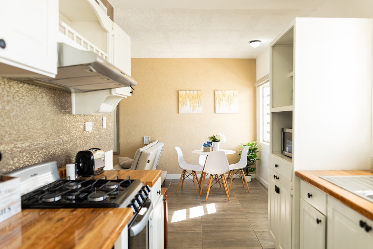 Uživajte u elegantnom iskustvu u ovom smeštaju koji se nalazi u centru grada. Objekat se sastoji od 2 spavaće sobe, moderne kuhinje sa kvalitetnim aparatima, 2 pametna televizora, 2 kupatila i dnevnog boravka/trpezarije. Objekat se nalazi u lepom delu grada. Spavaće sobe su raskošno uređene sa udobnim krevetima. Naše prebivalište nudi privatni parking (garaža/prilaz). U neposrednoj blizini pijace Las Palmas Marketplace, lepih restorana i supermarketa. Brz 1-minutni pristup I-10. Vožnja od 8 minuta do Cielo Viste.