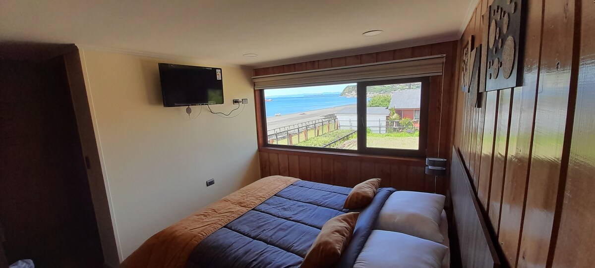 Uživajte u prostranoj sobi sa bračnim krevetom, dizajniranom da vam pruži udobnost i spokoj. Sa panoramskim pogledom na okean koji će vam oduzeti dah, ova soba ima potpuno privatno kupatilo, TV i sve moderne sadržaje. Sve to, obavijeno toplinom i šarmom autentičnog chilota gostoprimstva.