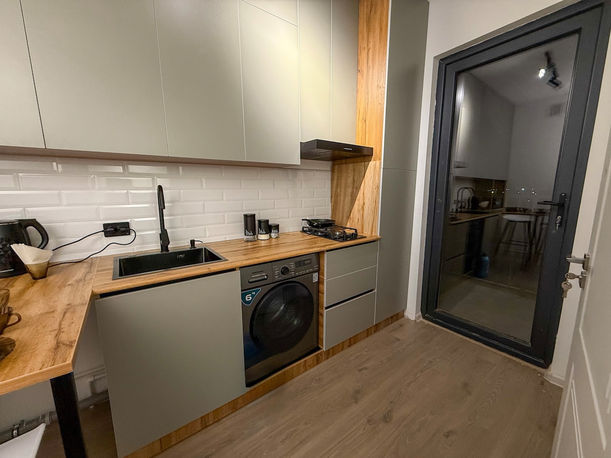 Современная отдельная квартира 47м2 расположена в 5 минутах ходьбы от проспекта Амира Темура и в 8 минутах ходьбы от метро Бодомзор. Здесь вы найдете спальню с кроватью king size и просторную кухню-гостиную с балконом и большим раскладным диваном. Квартира оборудована всей необходимой техникой, кондиционерами и Smart TV в каждой комнате. Вас также порадует наличие кофемашины с запасом кофе. Регистрация бесплатна по Вашему запросу. We speak English.