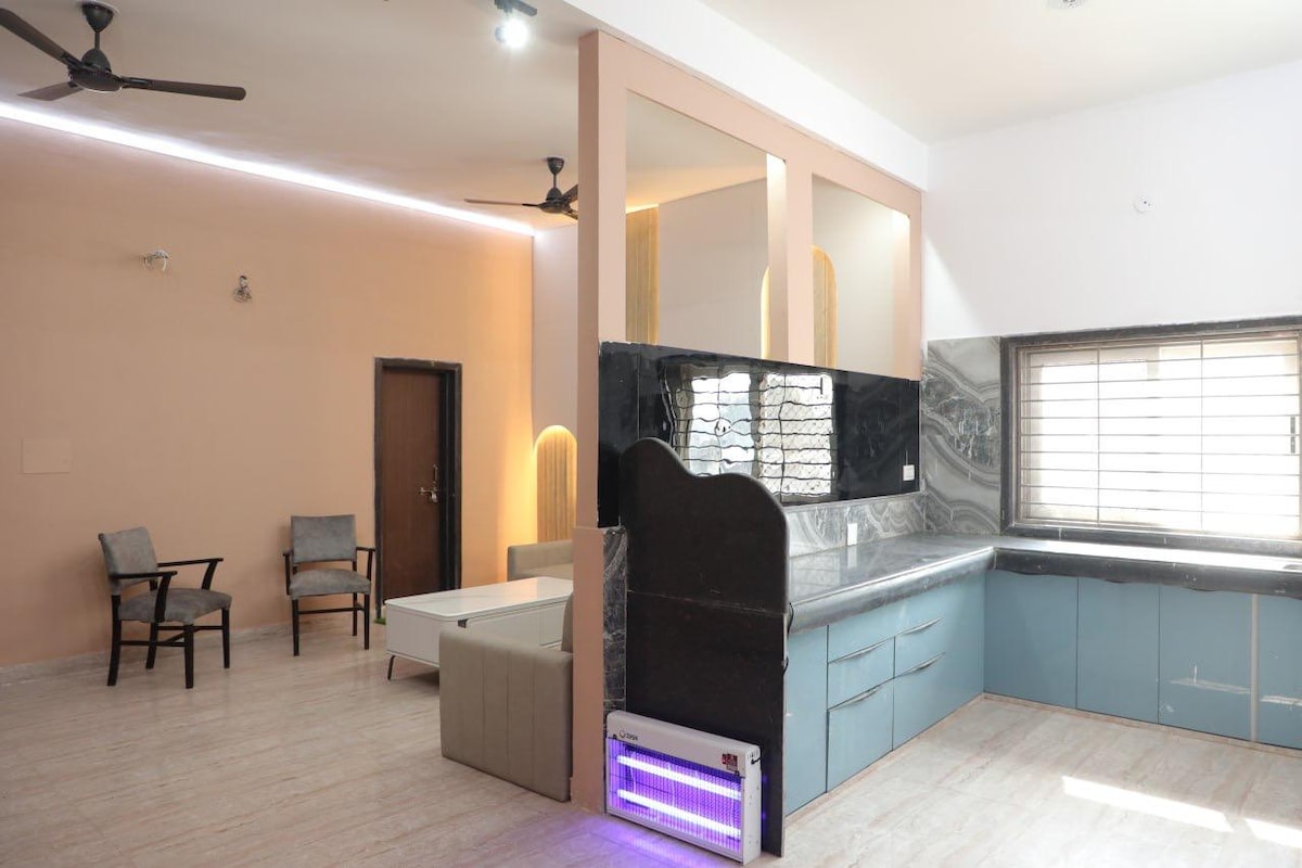 Have fun with the whole family at this stylish place. The whole group will be comfortable in this spacious and unique space. Its double floor house with area of 1920sq feet. It has three 2BHK and one 1BHK flat. Each stay flat very unique Marble stone are used for double bed and sofa. Very unique and spacious flats with full ventilation. All the rooms are very open to sun rays, So its full of brightness. Property has enough parking space. Location is peaceful and contains power backup.
