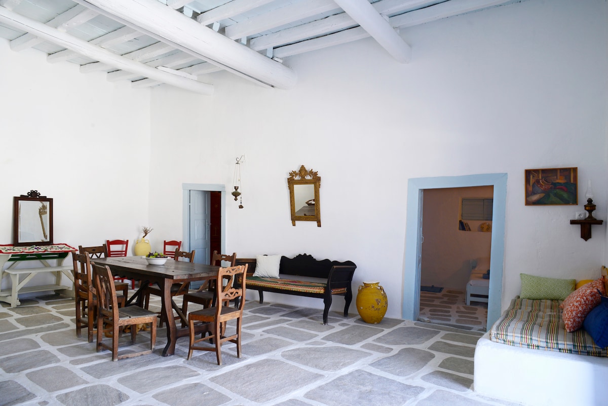Istorijska 400-godišnja kikladska kuća u srcu Iosa. Smještena na prelijepom ostrvu Ios u Kikladima, ova kuća je pažljivo obnovljena kako bi kombinovala istorijski šarm sa modernom udobnošću. S poštovanjem renoviran kako bi sačuvao svoju tradicionalnu arhitekturu, nudi luksuzno, ali udobno utočište u srcu sela. Samo nekoliko koraka od pitoresknih uličica, lokalnih taverni i pogleda koji oduzimaju dah, to je savršena baza da doživite pravi duh Iosa