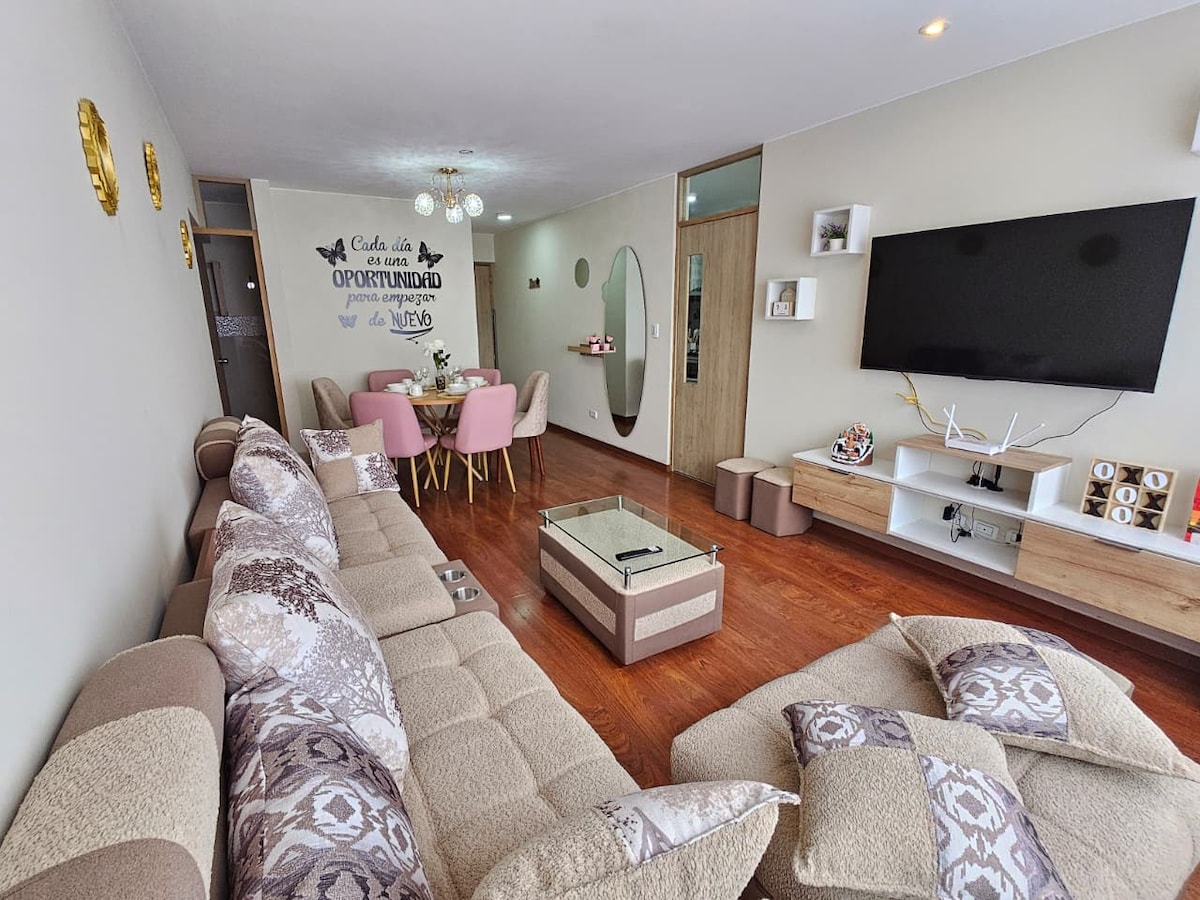 Es un apartamento cómodo, ubicado en el centro de miraflores a 1 cuadra del malecón, muy cerca a restaurantes, centros comerciales (larcomar), lugares turísticos, playas, entre otros. De 90 m2 de amplitud con 1 cama y un sofá cama, 1 baño completo y 1 medio baño, 1 cocina, sala y comedor. El apartamento está en un sexto piso con ascensor. Un lugar muy acogedor y en uno de los distritos más importantes de Lima.