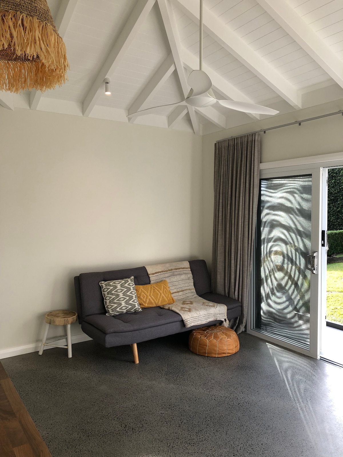 Lagan i prozračan vrtni stan sa 1 spavaćom sobom i odvojenim ulazom. Samo izgrađen sa visokim plafonima, izloženim gredama i poliranim betonskim podovima . U spavaćoj sobi postoji potkrovlje koje možete da istražite. Odlično mesto za čitanje knjige ili spavanje. Tu je odvojeni salon/ kuhinja sa staklenim kliznim vratima koja vode na terasu sa pogledom na baštu. Paluba je okrenuta ka severu i natopljena suncem. Imate sopstvenu kuhinju i kombinovani veš u kupatilu. Za udobnost imate ventilatore na plafonu i klima-uređaj.