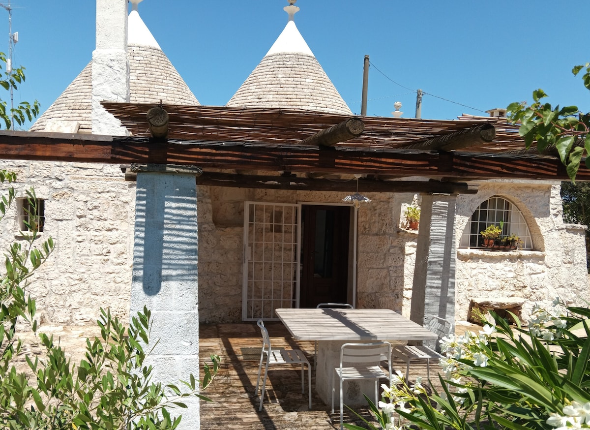 Renovirani trulo na mirnoj lokaciji na selu sa autentičnim stilom, većina enterijera je reciklirana ili stari namještaj preuređen na moderno funkcionalan način. Ima 1 dvokrevetnu spavaću sobu i 1 kauč u dnevnom boravku. Novouređeno kupatilo sa tušem,potpuno opremljenu kuhinju, mašinu za pranje veša i mnogo prostora na otvorenom (jedna terasa kojoj se može pristupiti iz spavaće sobe i jedna sa druge strane sa roštiljem Pristup bazenu dijeli se sa gostima druga 2 objekta (bez spoljašnjeg)