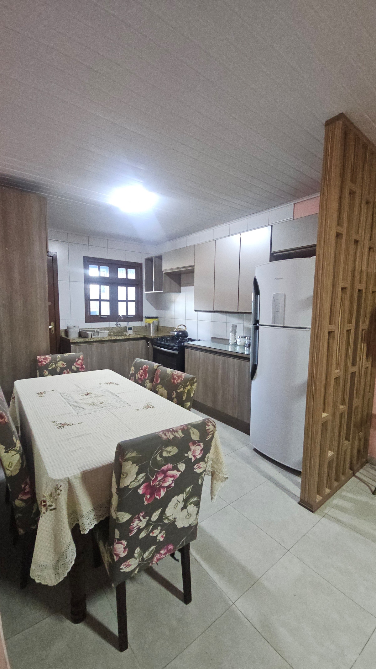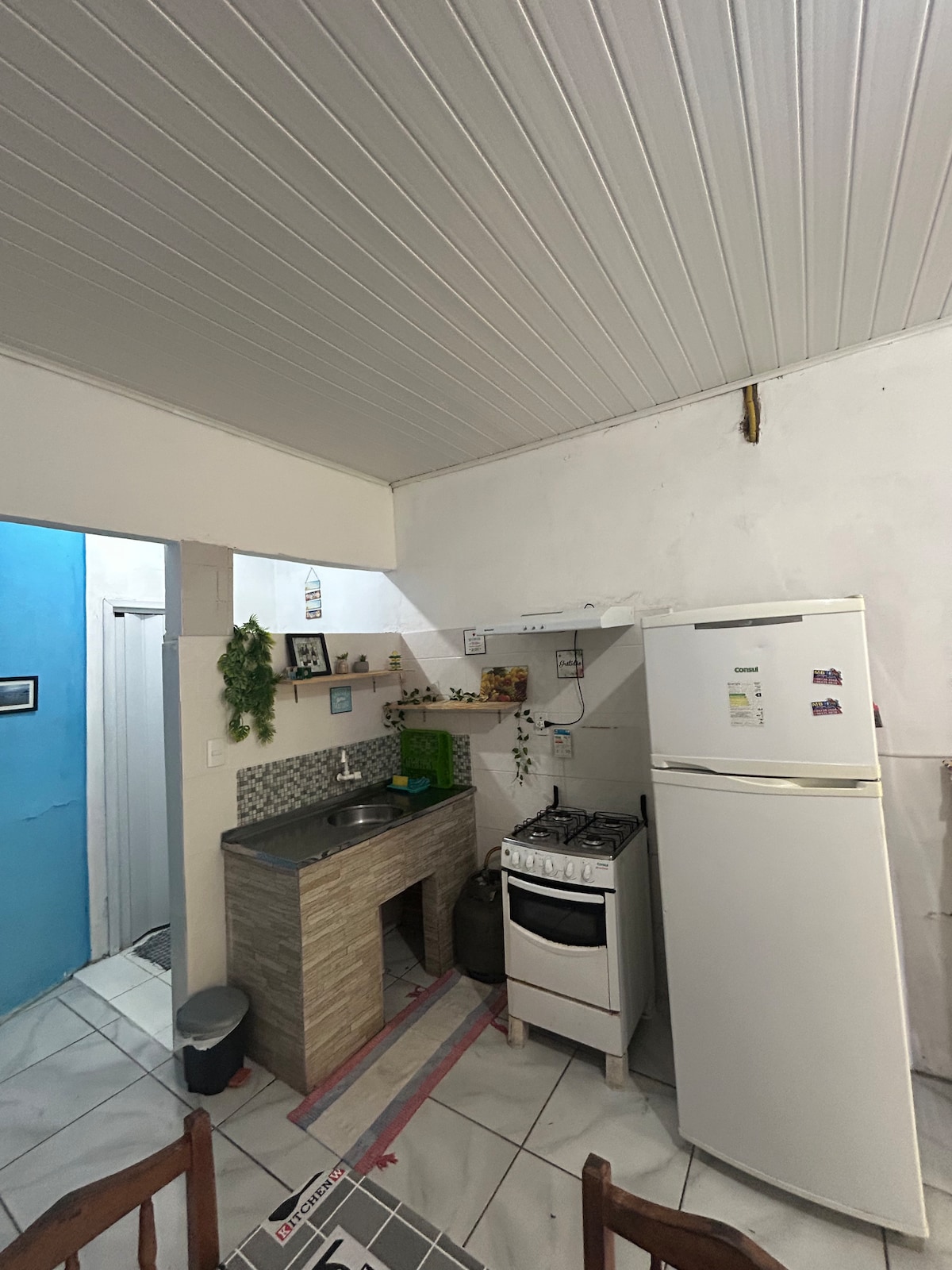 5 minutos de carro da praia e 7 do centro. Casa conta com wi-fi, tv com acesso aos canais aberto s, 2 quartos, 1 banheiro, sala e cozinha. 1 quarto com uma cama de casal e uma de solteiro auxiliar, 1 quarto com uma cama de casal, , 1 cama de solteiro auxiliar, + um colchão de casal extra e três ventiladores. Cozinha completa com fogão, geladeira, microondas, cafeteira, torradeira, liquidificador, jarra elétrica, garrafa térmica, churrasqueira e espetos, fogão a lenha
