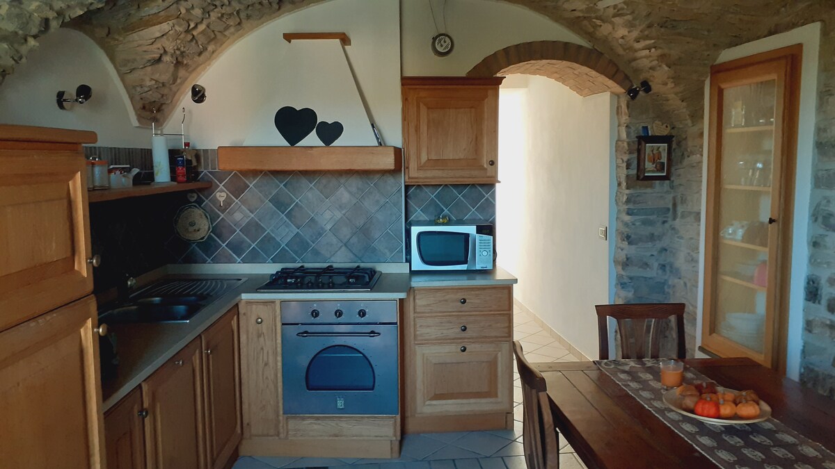 IT008031C2MO35XB65 Uživajte u opuštanju koje nudi ovaj dom modernog i linearnog stila, ali obogaćenog starinskim namještajem. Kuća se nalazi u prirodnom okruženju, spoljnim prostorima upravlja mala sertifikovana organska farma, a prisutni usevi su masline, vinova loza i gorke pomorandže. Zimi peć na pelet treba očistiti i napuniti. Vrijeme pristupa šporetu biće dogovoreno sa gostom.