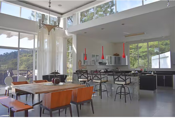 Tropski „otvoreni koncept” Airbnb, sa privatnim bazenom i platformom za jogu/meditaciju, koji se nalazi u tipičnom selu, 20 minuta izvan vreve Panama Sitija, Panama - Centralna Amerika. Ovaj savremeni tropski dom nalazi se u brdima Kaseresa na 5 hektara visokoj finci punoj tropskog drveća, ptica i manikiranih površina. Roštilj na gas i ugalj na otvorenom sa zadnje terase sa vertikalnim biljem za savršeno utočište za opuštanje.