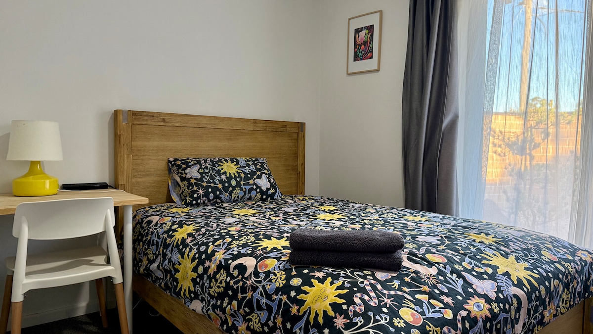 Welcome to your home away from home, featuring beautiful jarrah floors, high ceilings, and a warm, inviting atmosphere. This flexible home with two fully independent living spaces suits groups seeking privacy and comfort. Area A: 1 bedroom + study Private kitchen Bathroom + separate toilet Own entrance Private outdoor space Area B: 1 large bedroom (king bed) Spacious open-plan living/dining (can also be used as a study or extra bedroom) Full kitchen Bathroom + separate toilet