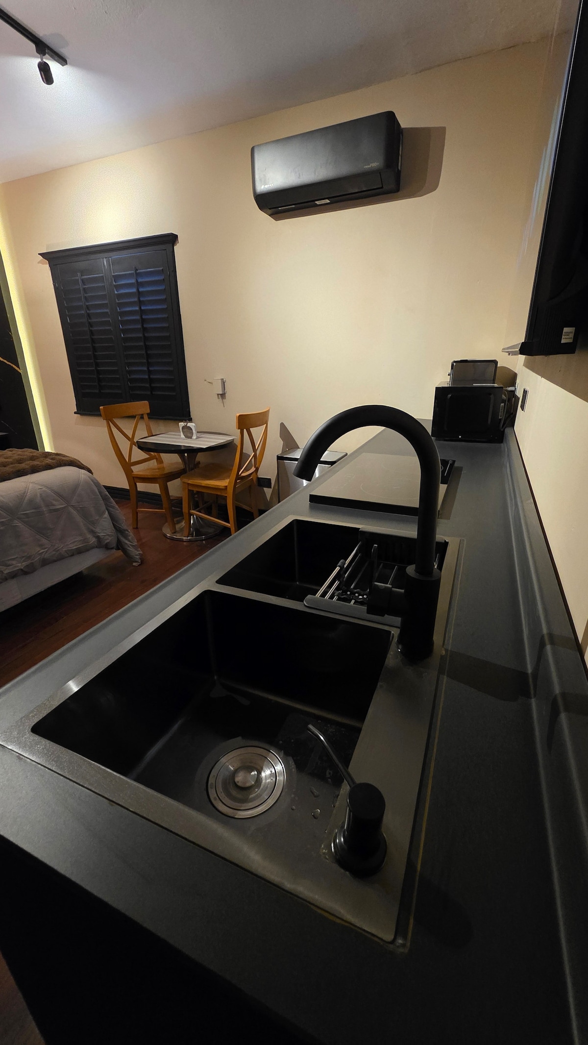 Vrhunska lokacija u blizini američkog konzulata Privatni stan na trećem spratu sa prelepim pogledom, idealan za ljude koji dolaze na sastanak u američki konzulat ili moraju da pređu u El Paso. 📍 Nalazi se sjeverno od grada ✔ Nekoliko minuta od američkog konzulata ✔ Traženje međunarodnih mostova ✔ Mirno i bezbjedno područje ✔ Restorani i supermarketi u blizini • 🛏 1 udobna i ušuškana soba • ❄ Mini-split (toplo/hladno) • Brzi 📶 Wi-Fi. • 📺 Smart TV.
