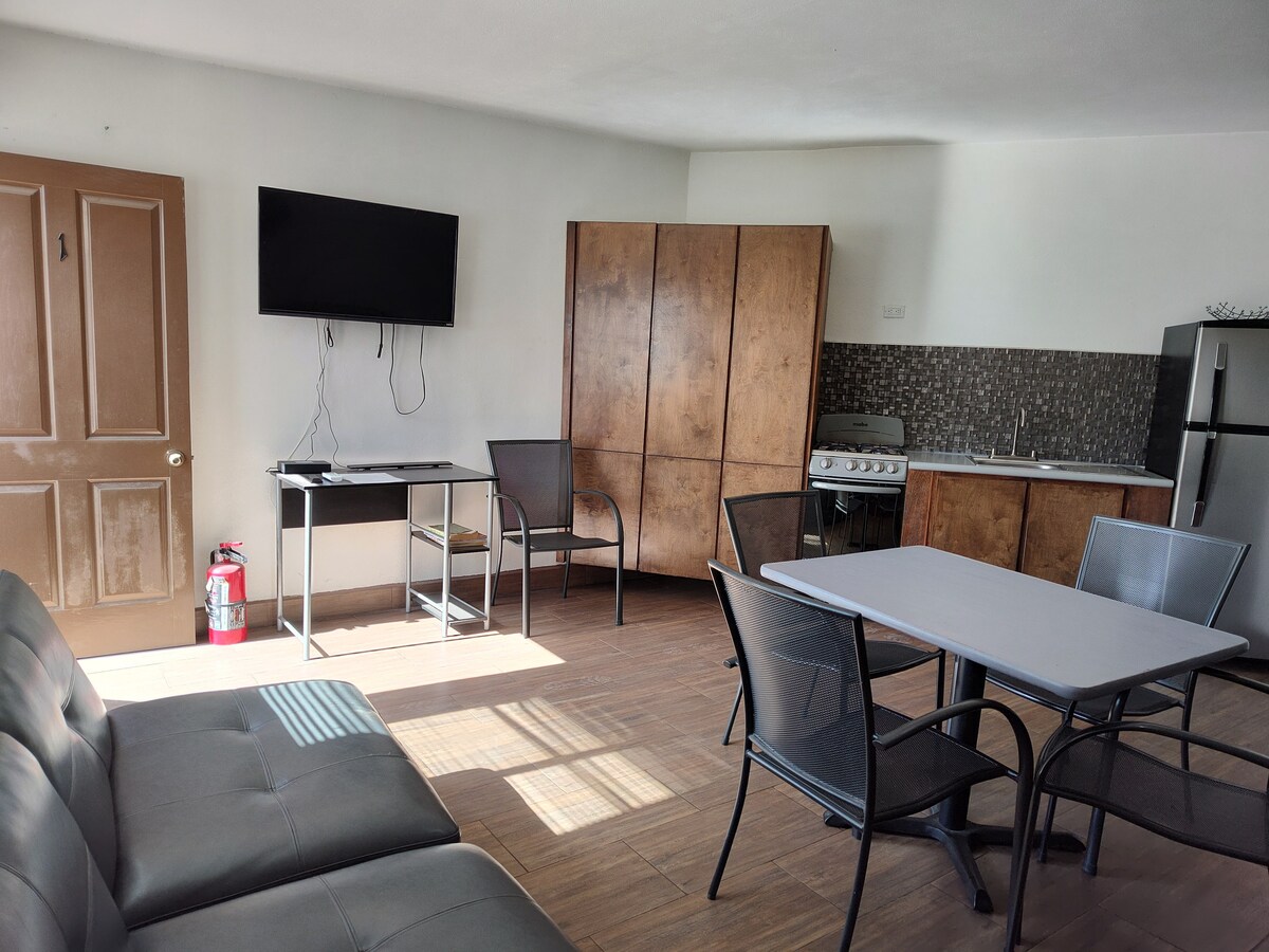 Uživajte u elegantnom doživljaju u ovom smještaju koji se nalazi u centru grada. - Idealno za jednu ili dve osobe. - U blizini El Pasa, Tx. (20 min. do konzulata) - U blizini Sorijane, Oxxo - Mini-split za hladnoću i grijanje, novouređen, reflektori - Kuhinjski pribor i osnovni pribor za kuvanje - Mirni i privatni stan - Duži boravci su dobrodošli - Ključevi se ostavljaju u sefu za ključeve (kontakt između gosta i domaćina se izbjegava zbog privatnosti korisnika). - NE IZDAJEMO FAKTURE -