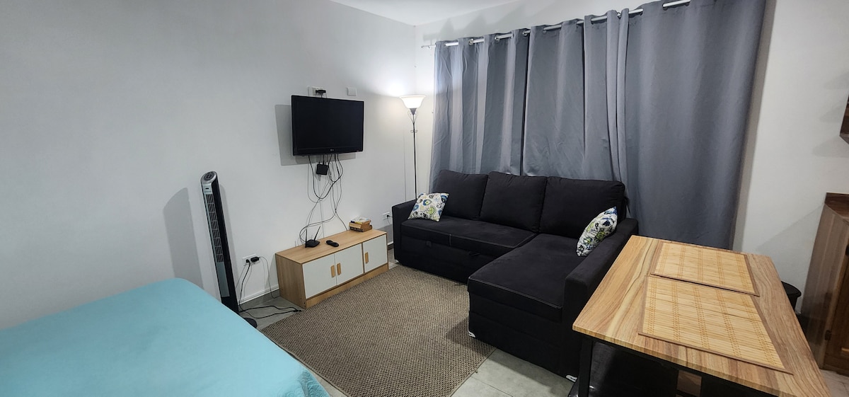 Uživajte u jednostavnosti ovog mirnog i centralnog doma., sa toplom vodom u tuš kabini. Od danas, 30. jula, već uključuje KLIMATIZACIJU, SMEŠTAJ ne UKLJUČUJE PARKING. Mini studio se nalazi na trećem nivou. To je veoma tiho i centralno mesto. Imamo 3 obližnja tržna centra i mnogo restorana, 10 minuta od istorijskog centra SS i 45 minuta od plaže.