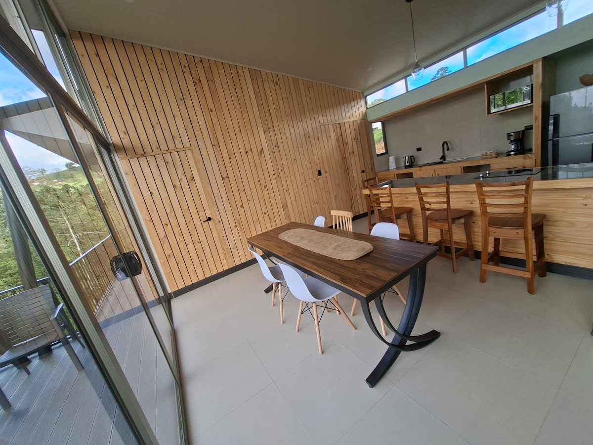 Povucite se u prašumu u udobnu, sigurnu i modernu luksuznu brvnaru, izgrađenu da vam pomogne da se povežete s prirodom i samim sobom. Uživajte u boravku uz potpuno opremljenu kuhinju, fantastično kupatilo sa prilagođenim tušem/hidromasažnom kadom i jedinstven dizajn spavaće sobe. Istražite privatne staze imanja sa 10 hektara primarne prašume sa tukanima, lapasima, kolibrima, leptirima i drugom faunom. Pazite, možda nećete htjeti da odete! Nalazi se u Veneciji de San Karlos, 65 km od aerodroma SJO.