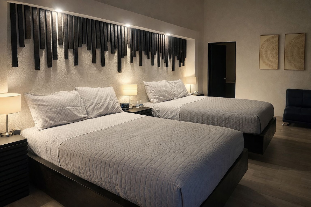 Relájate y disfruta de la comodidad de nuestras habitaciones, diseñadas para un descanso total. Comodidades de la habitación: -Camas matrimoniales con protectores antiácaros. -Cortinas blackout. -Wi-Fi de alta velocidad. -Aire acondicionado. -Ventiladores. -Smart TV. -Agua caliente las 24 horas. -Baño privado. Ubicación y servicios adicionales: -A una cuadra del mercado -Muy cerca de bancos, la presidencia, Oxxo, restaurantes, cafeterías y el jardín principal. Ofrecemos venta de tours.