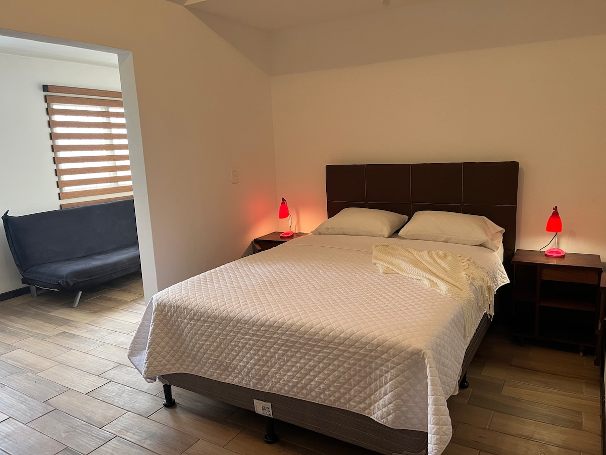 Estamos seguros que van a disfrutar de este loft, esta en buena ubicacion, sector tranquilo sin trafico y seguro esta diseñado con colores no muy comunes pero elegante y comodo, esta equipado con todo lo necesario, cocina con todos sus utensilios, 2 televisiones, cama comoda, aire acondicionado, baño completo, facil acceso tienen panaderia en la esquina, tienda de barrio, cafeteria muy cercana, sin duda se sentiran como en casa se diseño con mucha dedicacion para hacer de su estadia la mejor