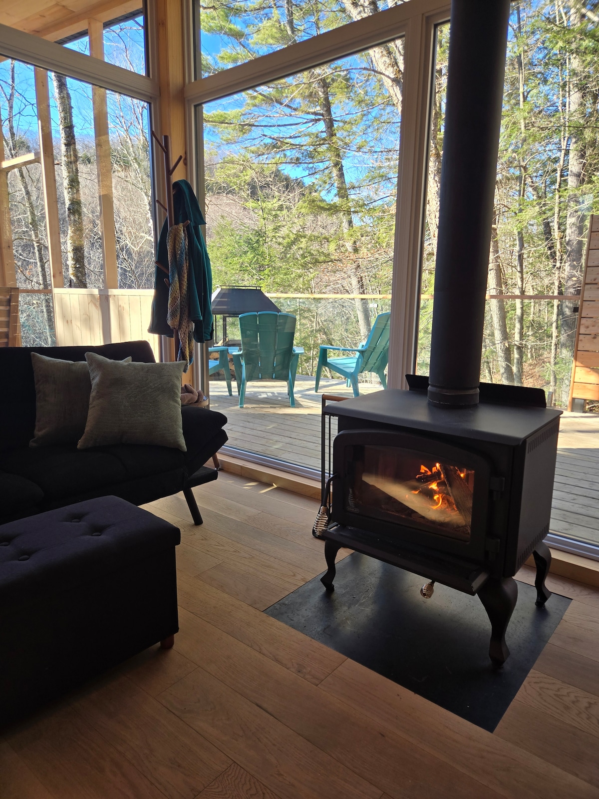 Nadamo se da ćemo ispuniti vašu fantaziju o kućici na drvetu. Kuća na drvetu je jedinstveno minimalističko iskustvo za one koji traže tihu samoću u brdima Gatineau. Uključuje sve sadržaje doma koji pružaju najviše udobnosti u svim godišnjim dobima. Pješačka udaljenost od Le Belvedere prihvatnog centra za vjenčanja. Jedna od jedinstvenih kućica na drvetu ručno izrađena od drveta je inspirativno i mirno utočište u prirodi. Institucija CITQ broj: #295678