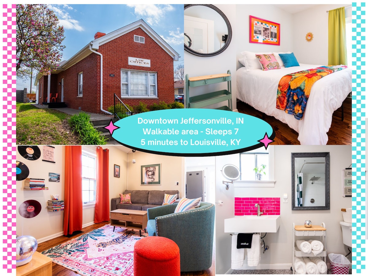 Ne paničite na ovoj diskoteci! Dobijate šarm malog grada + energiju velikog grada – mirno spavajte u Džefersonvilu u Indijani – istražujte pješice ili pređite rijeku da biste doživjeli sve što nudi Lujvil u Kentakiju. Ovaj elegantni i eklektični jednokatni dom ima udobne krevete, veliko kupatilo, kompletnu kuhinju i puno zabave upakovanih u ovaj prostor. *Ovaj smeštaj prikazuje 1 spavaću sobu sa 3 kreveta i 1 kupatilo, ali za veće grupe na zahtev su dostupne 2 spavaće sobe sa 4 kreveta i 1,5 kupatila*