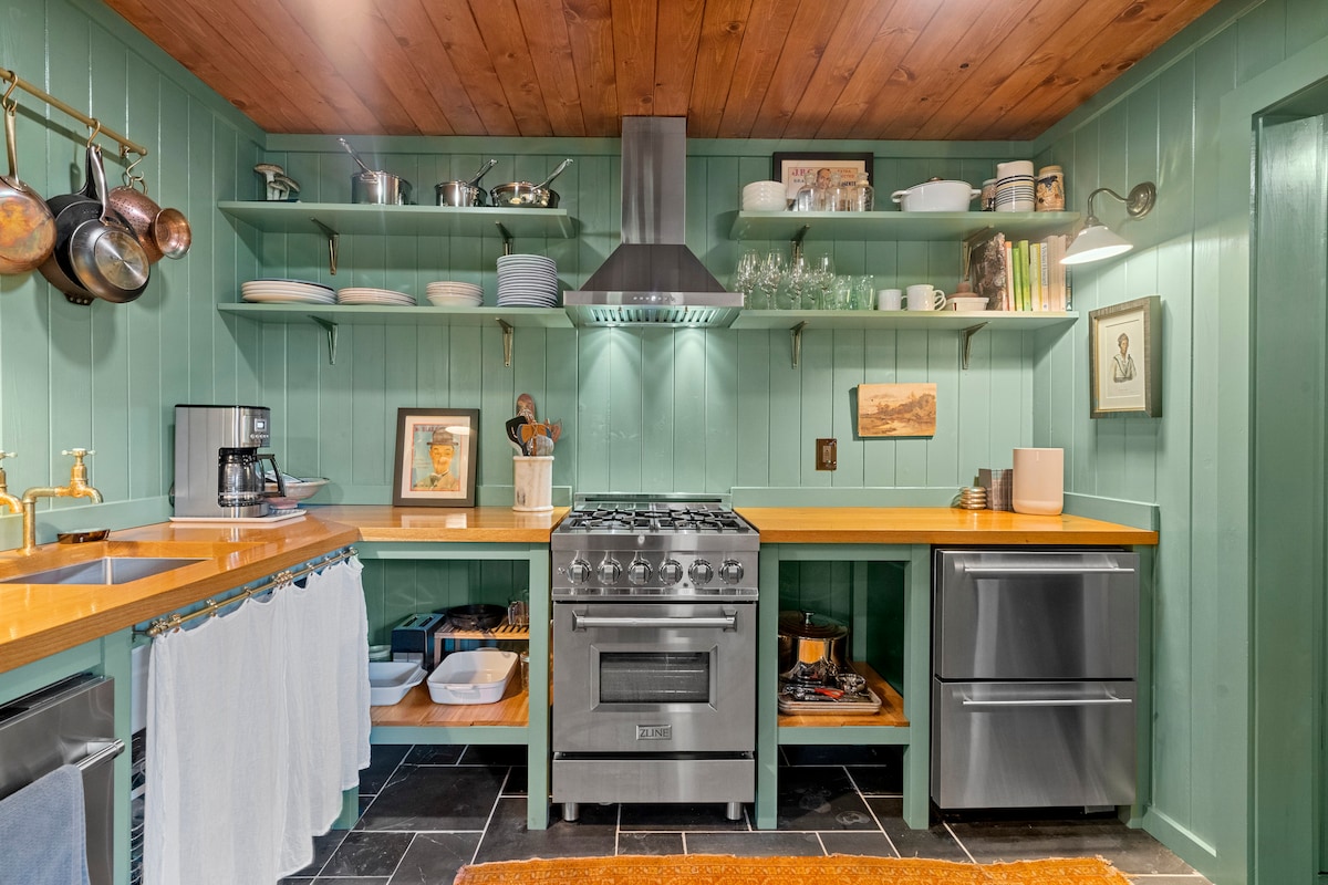Rustikalna lepota sa modernim detaljima koji se nalaze u krugu od dve vinarije. Prva stvar koju primetite ovde je neverovatna tišina dok uživate u dramatičnom pogledu na oblake koji se nalaze na vrhu planine Staklene planine 1200' iznad. Uživajte u jutarnjem espresu na platformi za jogu na drveću od 40 stopa iznad potoka, a zatim se ohladite nakon pešačenja/bicikla/vesla na otvorenom tušu. Ili pustite da vas letnji povetarac uspavljuje na tremu za spavanje pijuckajući lokalna vina. To mi je omiljeno.