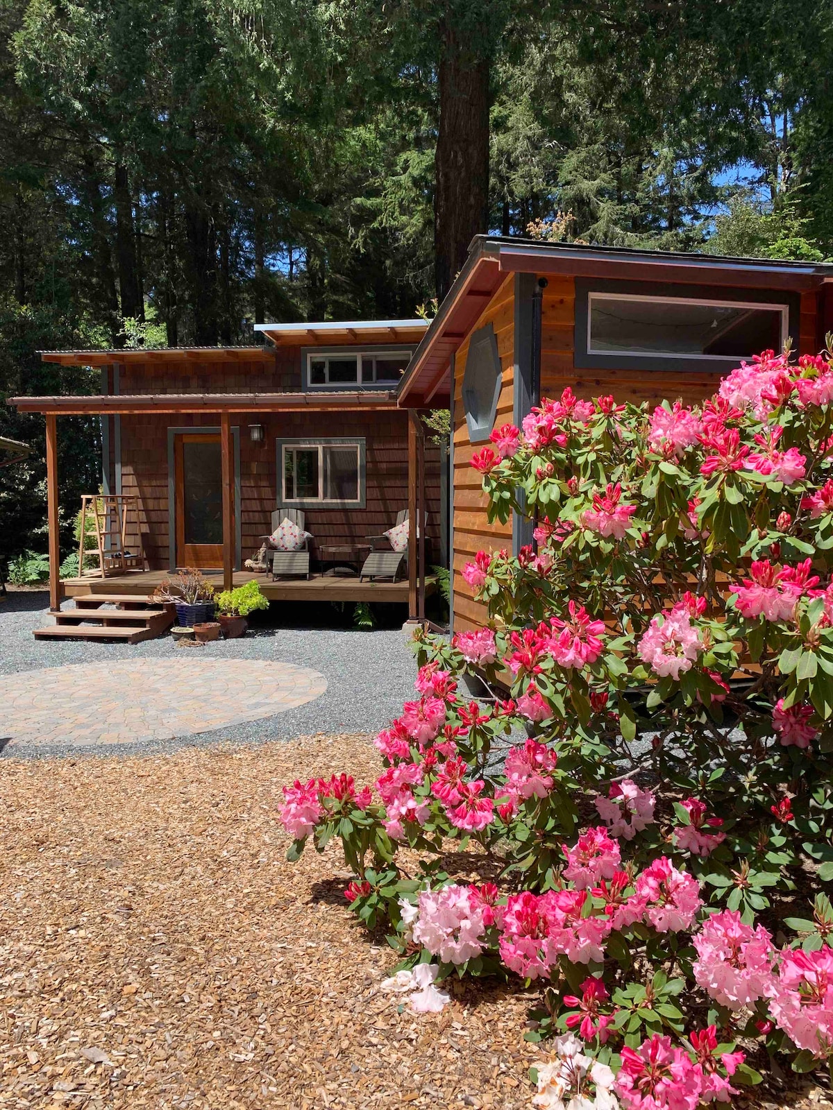 This cozy house was just built on 3-acres. This property has all modern appliances & everything you will need for cooking. There is a covered front porch that overlooks a garden & has a barbecue for a relaxing meal. The back of the property has a fire pit & table for roasting marshmallows. Two walking blocks away is the Botanical Gardens where you will experience vast gardens and spectacular views, and maybe see a pod of whales. The house has a private driveway and a code to get in.