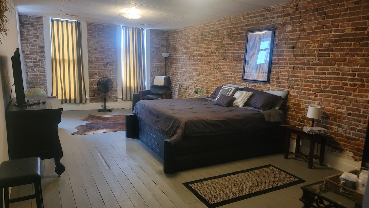 Slatki stan u centru grada na 2. spratu sa 1 spavaćom sobom i 1 kupatilom sa čajnom kuhinjom. Opustite se na kraljevskom ljubičastom dušeku dok uživate u Netflix-u i kokicama! Čajna kuhinja uključuje sudoperu, mikrotalasnu rernu i frižider, bez šporeta. Mnogo sunca i predivan pogled na centar Konkordije. Kratka šetnja do restorana, kafe, prodavnice, supermarketa, Brodvejskog trga, pozorišta i muzeja. Lako dostupno sa autoputeva 81 i 9 sa parkingom! Stol za stolni tenis i teretana za cijelo tijelo u kancelariji ispod dostupni su na zahtjev.
