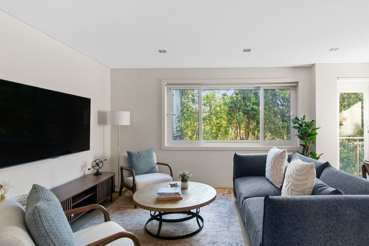 Ovaj dizajnerski stan je nedavno renoviran i nalazi se na gornjem spratu okrenut prema N/E smještenom među krošnjama drveća s pogledom na okean na horizontu. Mirna i privatna lokacija sa besplatnim parkingom na ulici i samo 10 minuta hoda do plaže. Uživajte u Charing Crossu sa svojim buticima, kafićima, restoranima, pabovima i javnim prevozom. Do raskrsnice Bondi Vestfild i železničke stanice ima 20 minuta lagane šetnje. Autobusi su dostupni sa obližnjih ulica. *Nije prikladno za djecu i bebe.