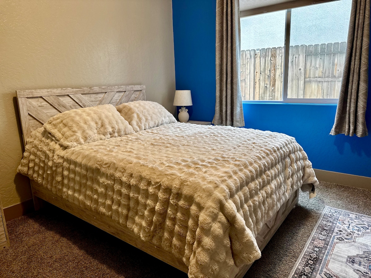 Obuhvata tri prostrane spavaće sobe, dva kupatila, dvorište sa bazenom, potpuno novu hidromasažnu kadu i restorane na otvorenom postavljaju standarde za veličanstvenost NE Fresno! Cijeli smještaj prikladan za porodice može udobno da primi 8 gostiju. Uključuje 1 bračni krevet (širine 150-179 cm), 1 bračni krevet (širine 150-179 cm), 1 bračni krevet (širine 150-179 cm) i krevetac za bebe. Smješten na više od četvrtine hektara, ovaj prelijepi dom utjelovljuje mir i spokoj, osiguravajući potpunu privatnost. Savršeno za poslovne ljude, porodice ili male grupe putnika!