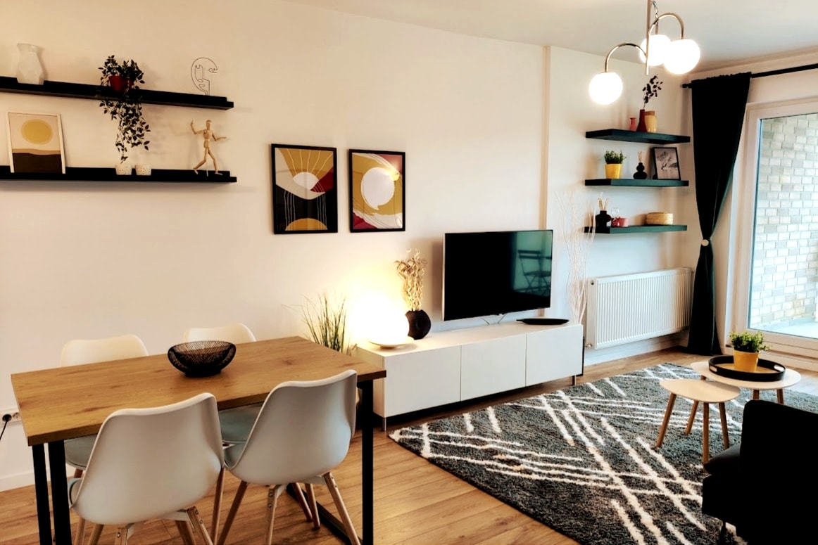 Stan ima površinu od 70 m2 i nalazi se u centralnom području, lako dostupnom sa tačke gledišta javnog prevoza. Sastoji se od 2 spavaće sobe, amblel sa bračnim krevetom, dnevnog boravka sa kaučem na razvlačenje, potpuno opremljene kuhinje, kupatila, prostora sa mašinom za pranje veša i mašinom za sušenje veša i 2 balkona sa pogledom na park. 1 parking mjesto se nudi na čuvanom parkingu sa pregradom 50 m od stana.