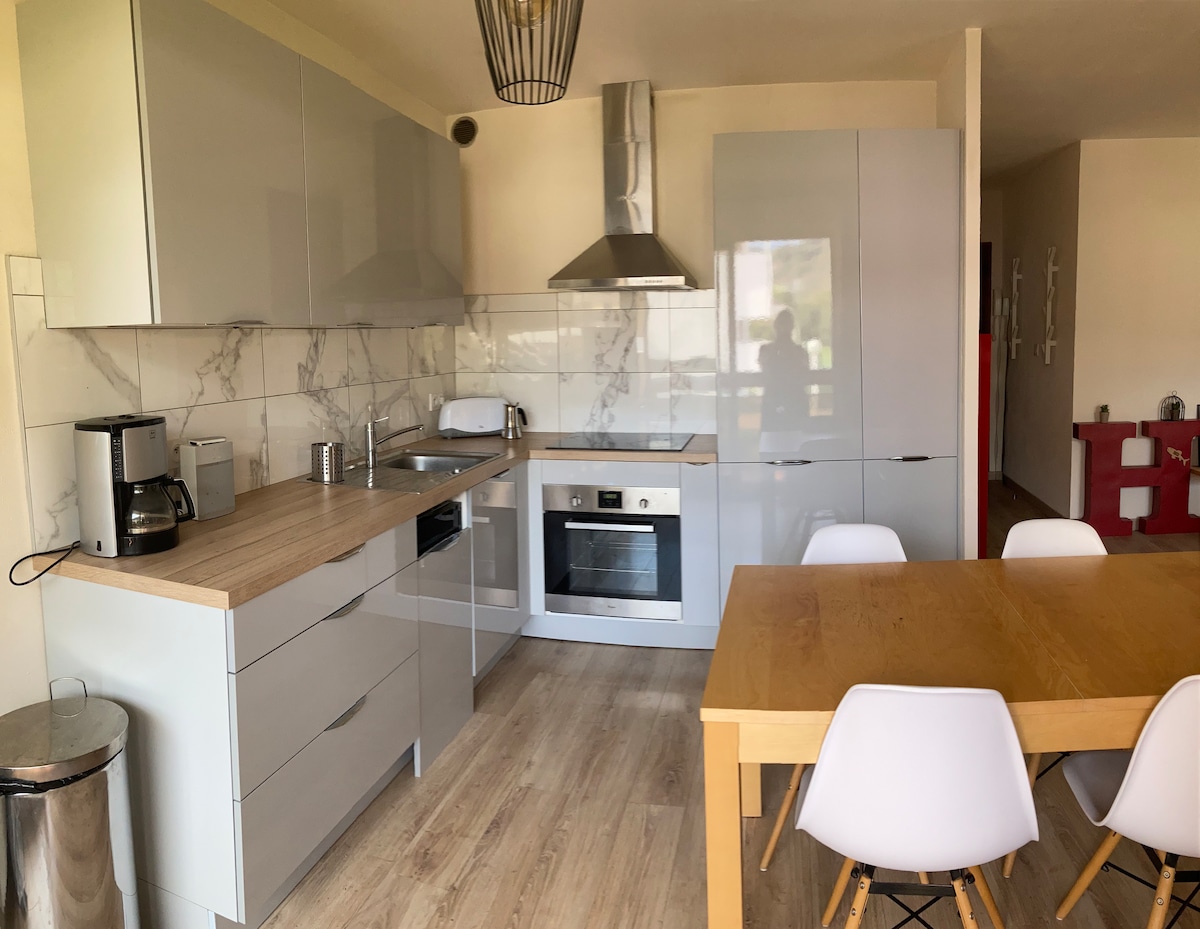 Moderan apartman za dvoje sa svim uključenim 🏔️ u srcu Kliza 🏔️ Udobna soba, svijetao dnevni boravak, opremljena kuhinja i terasa od 12 m². Idealno se nalazi 30 minuta od skijališta, pješačenja, Ansija, Ženeve i Šamonija. Dizajniran za 2 osobe, savršen i za sportski boravak i za poslovno putovanje, sa svom udobnošću i praktičnošću u hiper-centru. Privatni, zaštićeni i natkriveni parking. Ključevi se mogu predati u skladu sa slučajem ranije. Slobodno pitajte.