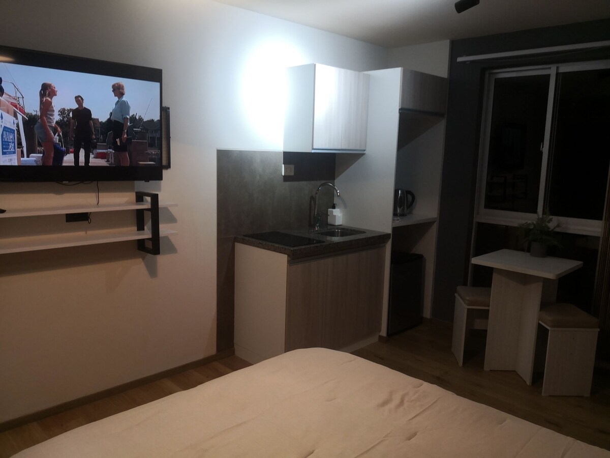 Este lugar tiene una ubicación estratégica. El edificio cuenta con servicios de lavado y secado, espacios de trabajo y estacionamiento de bicicleta. El monoambiente cuenta con una cama doble, cocina, minibar, un baño, micro hondas, ropero y lavaplatos. También cuenta con todos los utensilios de cocina.