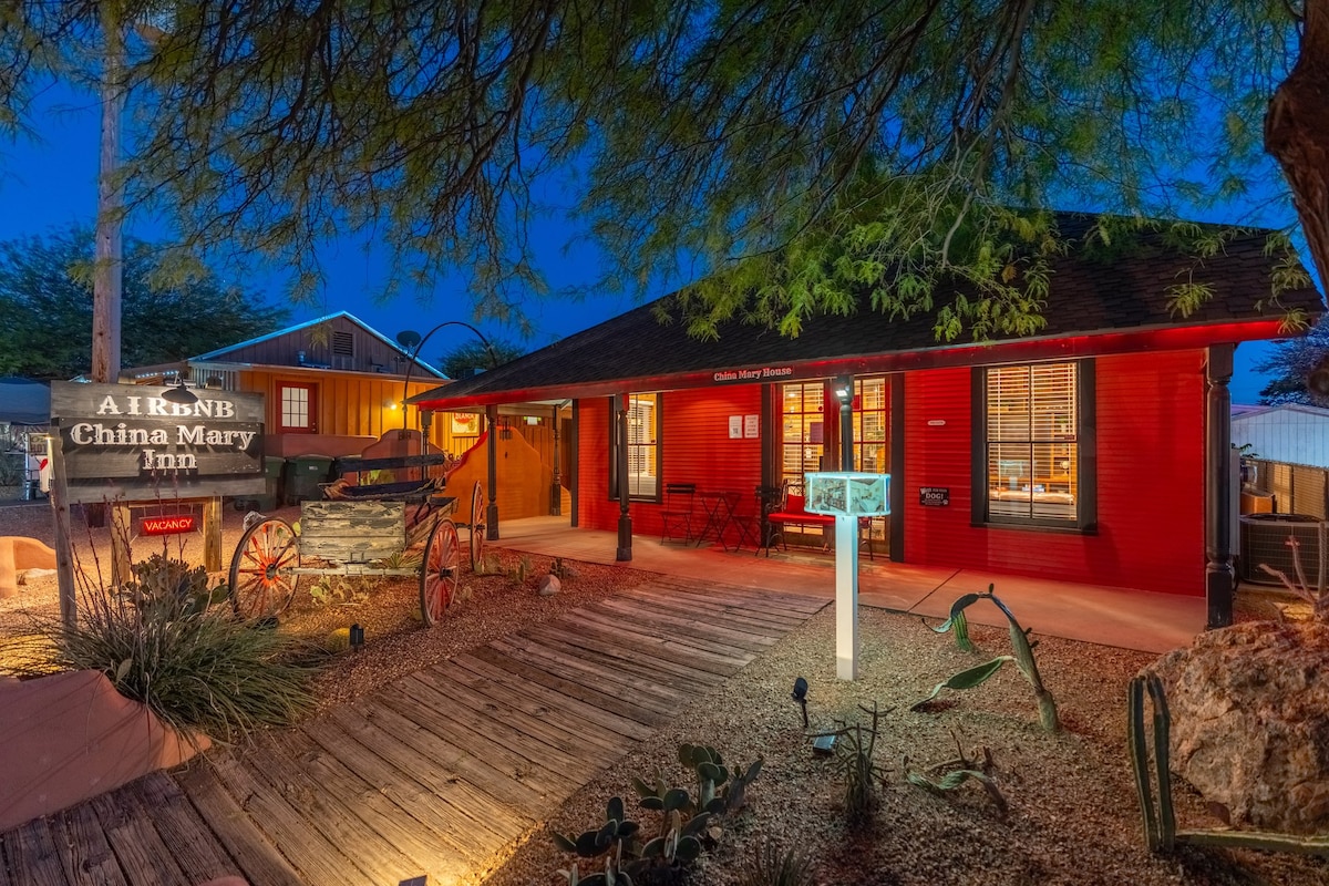 Apartman Dr. Goodfellow ima jednu spavaću sobu (bračni krevet i krevet na sprat) sa trpezarijom, potpuno opremljenom kuhinjom, vešom i kupatilom. Opustite se u prelijepom dvorištu fontane i uživajte u muzici uživo iz obližnjeg salona Four Duces. Ili se zabavite uz golf, bacanje sjekire, kukuruz i roštilj . The Historic China Mary Inn is in the center of all the action of Tombstone and the exciting events of Allen Street & the World-Famous OK Corral. Sa najviše 4 odvojena tematska apartmana dostupna za veće grupe.