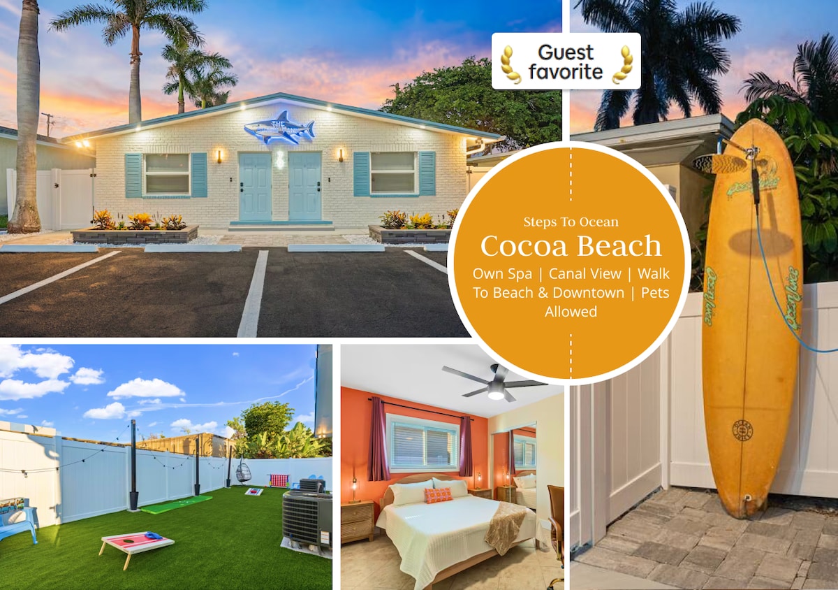 Dobro došli u raj! Ovaj studio apartman nalazi se NEKOLIKO KORAKA od zloglasnih plaža kakaa i lansiranja raketa. Gledajte kako vam raketa izlazi na ULAZNA VRATA. Možete da surfujete, sunčate i opustite se tokom dana, a zatim uživate u butik restoranima udaljenim 1,6 milja. Obezbeđujemo stolice za plažu, peškire, daske za surfovanje, pa čak i igračke za plažu; SVE ŠTO će vam biti potrebno da učinite svoj boravak neverovatnim. Ron Džon je udaljen 4 milje, a Port Kanaveral je udaljen 8 milja. Pogledajte naše recenzije u 1000-ima!