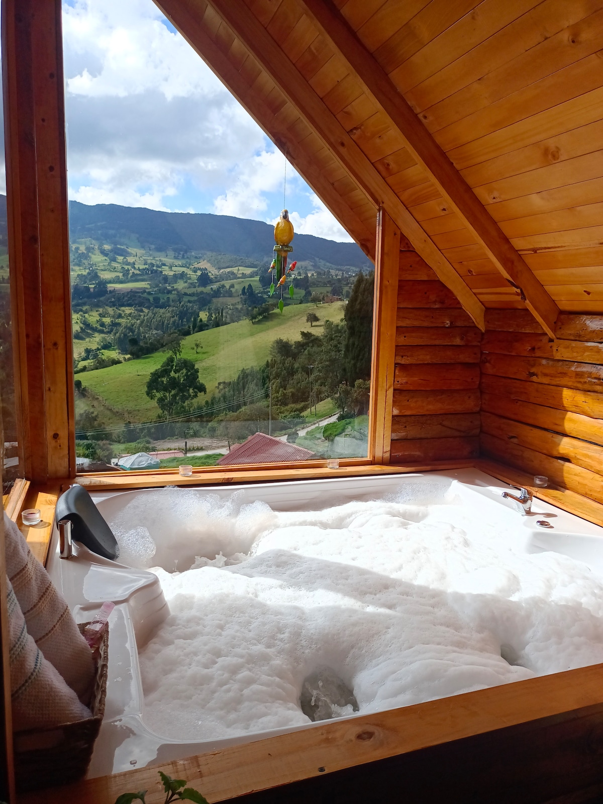Predivna brvnara 1 sat od Bogote, izgrađena po nivoima koji prate planinski teren, sa prelepim pogledom na dolinu Nemocón i Neusa, okružena prirodom, voćem i domaćim životinjama. Udobni prostori sa odličnim prirodnim osvetljenjem omogućavaju divan odmor i trenutak isključivanja kao porodica. Možete da sedite oko grejanja kamina, delite društvene igre, pripremate bogate recepte i gledate u pejzaž dok uživate u kontaktu sa prirodom.
