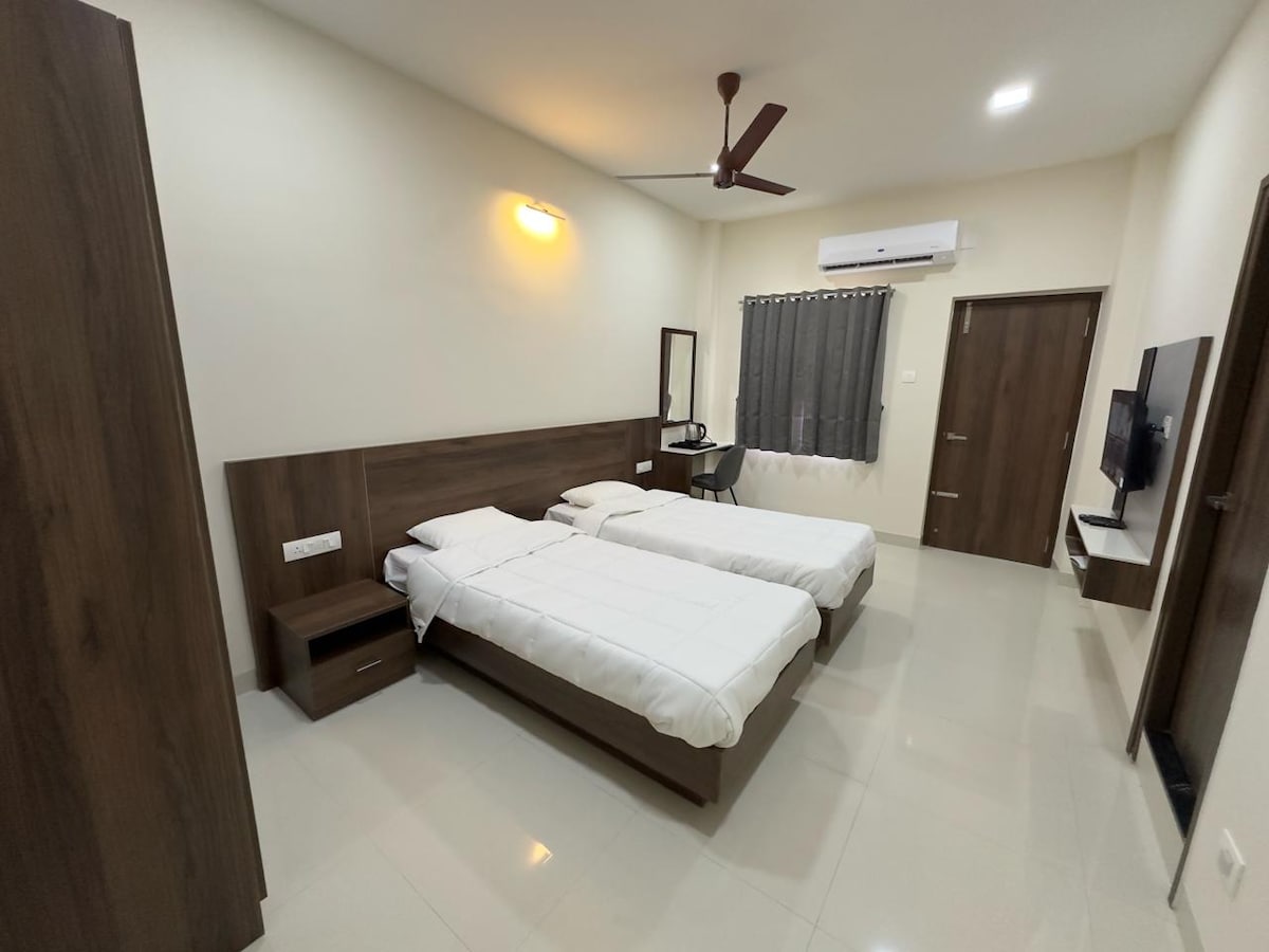 Ovo je jeftin smještaj u velikoj spavaćoj sobi sa kuhinjom i privatnim kupatilom. Kuhinja može da se pobrine za vašu osnovnu opremu. Park Bharathi (u Koloniji Saibaba) je mirno stambeno područje sa parkovima, prodavnicama, restoranima, kafićima i 1 km od bolnice Ganga. Uživajte u jutarnjim/večernjim satima na terasi, što vam omogućava da uživate u sunčevoj svjetlosti ili da uživate u monsunskim pljuskovima. Mreže za komarce pričvršćene na sva vrata i prozore. Ovo je na trećem spratu bez lifta.