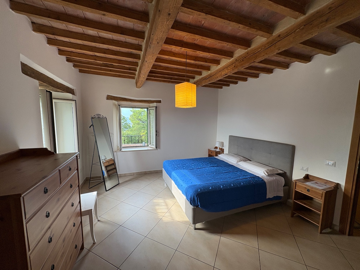 Svijetli stan na trećem spratu u prestižnoj renesansnoj zgradi u istorijskom centru Urbina, ispred rodnog mjesta Rafaela Sancija. Namještaj u kuhinji i spavaćim sobama je u potpunosti renoviran. Stan ima veliku spavaću sobu sa bračnim krevetom i kaučem na razvlačenje i drugu spavaću sobu sa 2 kreveta za jednu osobu. Gostima su na raspolaganju 2 kupatila. Vrhunac je veličanstvena terasa s pogledom na Duždevu palatu i grad koji oduzima dah. NEMA LIFTA