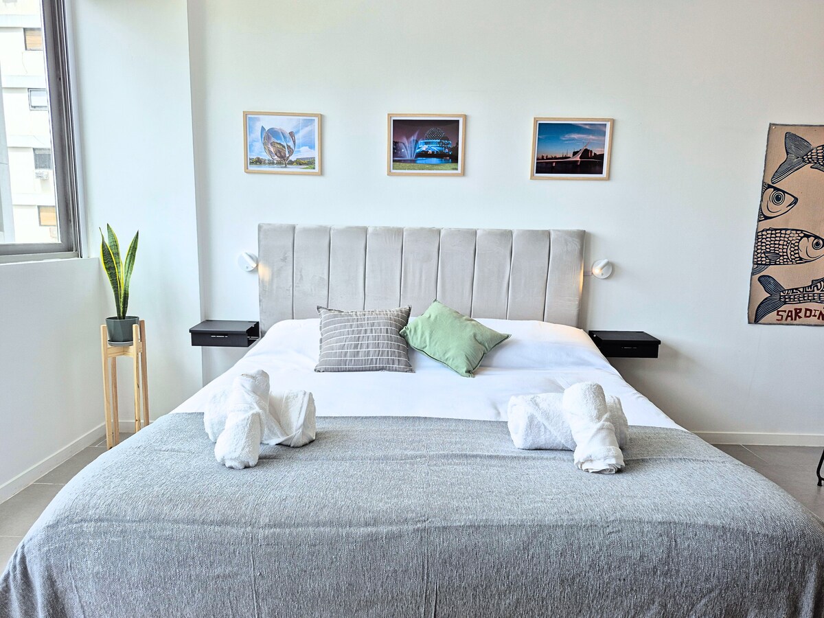 Loft type studio with everything you need to enjoy a stay in one of the best and most modern buildings. Comfort and design in the new gastronomic center of Colegiales. Equipped with Queen size bed, high density foam mattress. The coffee area with a Nespresso, kettle and toaster. All kitchen utensils. Living room with sofa bed. 55 inch TV and also a desk for those who need some time to work. Wifi and hot and cold air conditioning.